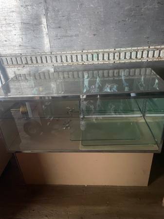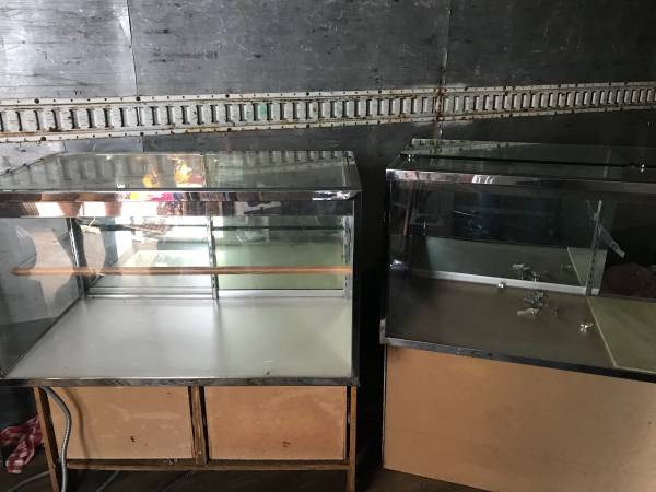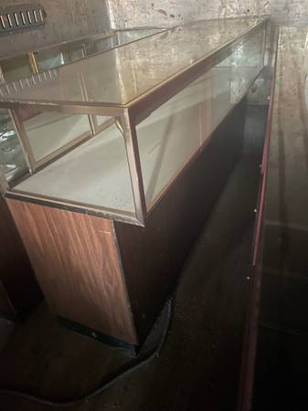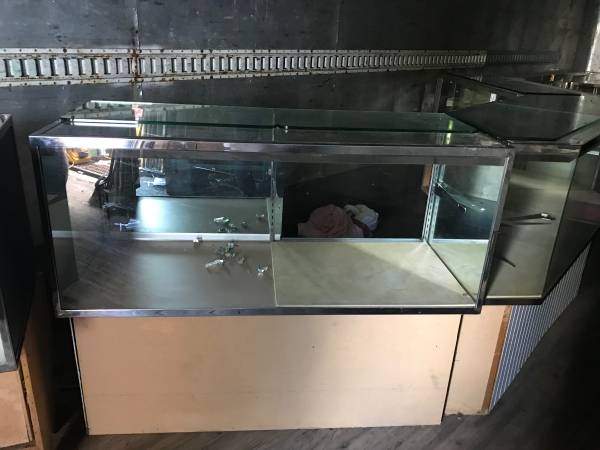 I have a four piece jewelry case set that fits together to go into a corner. Overall, good solid condition. Ready to go. $200 for the four piece set. I also have several other 4 foot and 6 feet jewelry cases available for $50 each. I have a few smaller ones with minor damage that I would sell for $40 each.