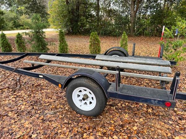 1989 Stratos Stratos Trail Boat Trailer. Adjustable to 18' to 21' boats. new tires, spare tire, surge brakes, needs carpet on bunks.